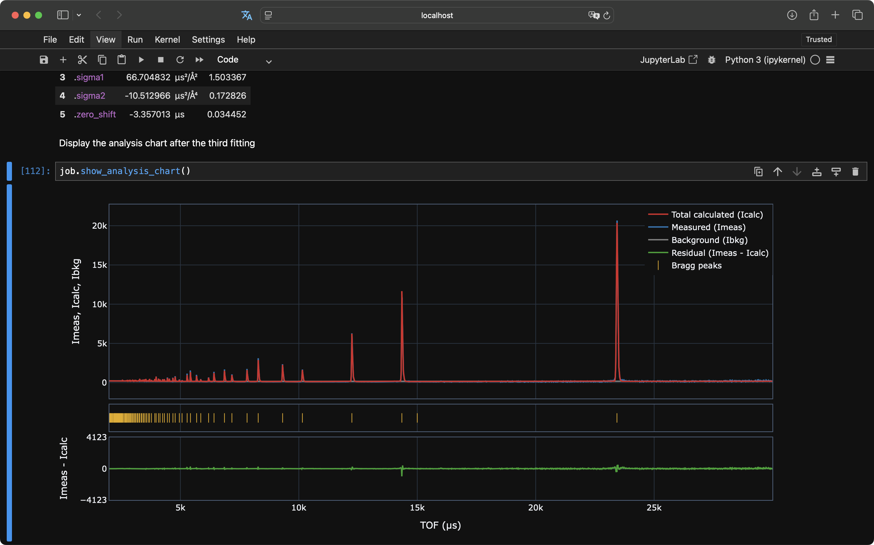 EasyDiffraction is scientific software for calculating neutron powder diffraction patterns based on a structural model and refining its parameters against experimental data.